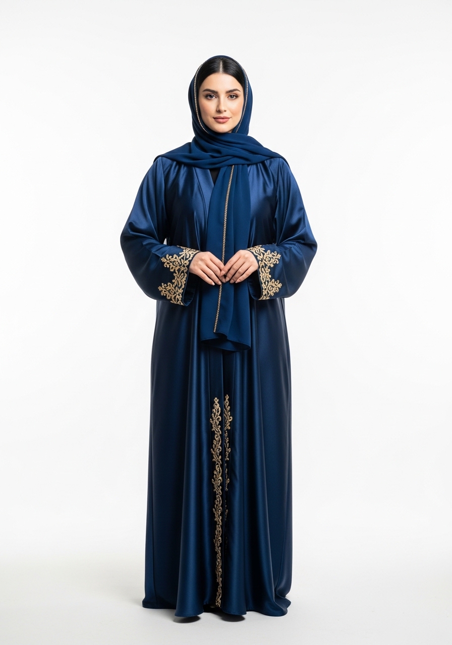 Introducing the Blue Satin Abaya, a masterpiece of modest fashion designed for the modern woman. This exceptional piece features a rich, deep blue tone that effortlessly complements any look.