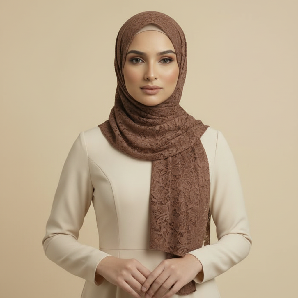 Discover the perfect addition to your modest fashion collection with our exquisite Brown Lace Hijab. Designed for the modern woman, this beautifully crafted hijab is made from premium Lace material, known for its soft texture and excellent drape. The stunning brown hue brings a touch of sophistication to any ensemble, whether styled for a casual day, work, or an elegant evening event. Our Lace hijabs ensure a secure, flattering fit that stays in place while offering breathability for all-day comfort. Pair this versatile brown hijab with your favorite abaya or outfit for an effortlessly chic and modest look.