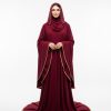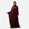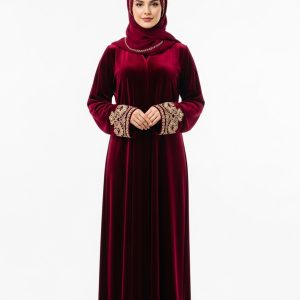 Introducing the Burgundy Velvet Abaya, a masterpiece of modest fashion designed for the modern woman. This exceptional piece features a rich, deep burgundy tone that effortlessly complements any look.
