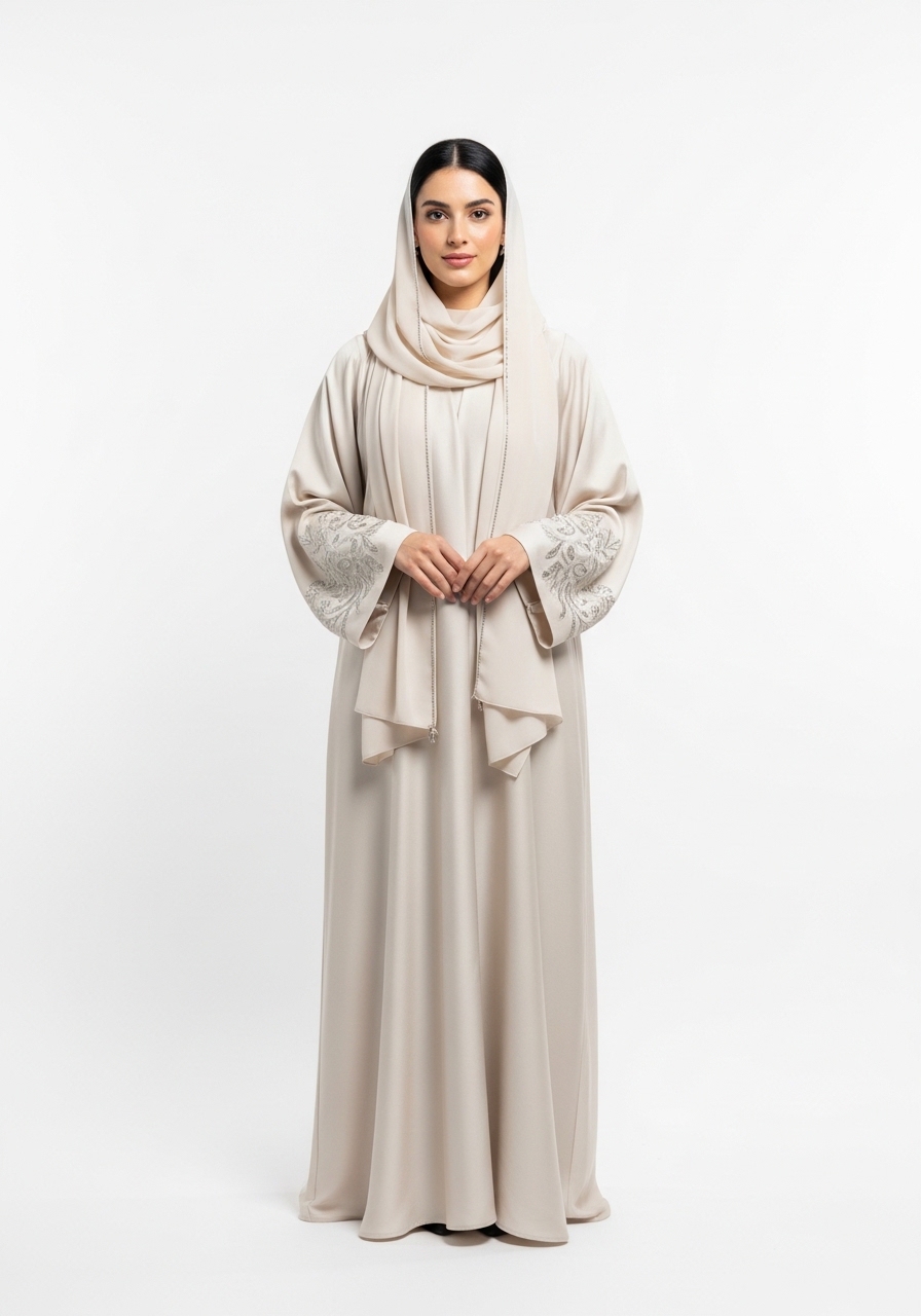 Introducing the Cream Silk Abaya, a masterpiece of modest fashion designed for the modern woman. This exceptional piece features a rich, deep cream tone that effortlessly complements any look.