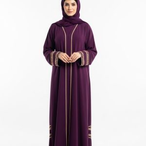 Introducing the Dark Purple Dubai Abaya, a masterpiece of modest fashion designed for the modern woman. This exceptional piece features a rich, deep dark purple tone that effortlessly complements any look.