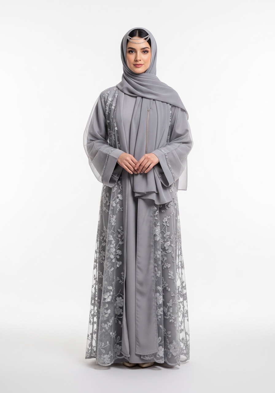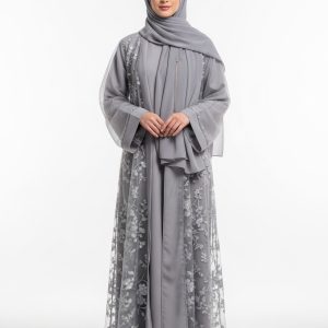 Introducing the Grey Organza Abaya, a masterpiece of modest fashion designed for the modern woman. This exceptional piece features a rich, deep grey tone that effortlessly complements any look.