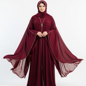 Introducing the Maroon Butterfly Abaya, a masterpiece of modest fashion designed for the modern woman. This exceptional piece features a rich, deep maroon tone that effortlessly complements any look.