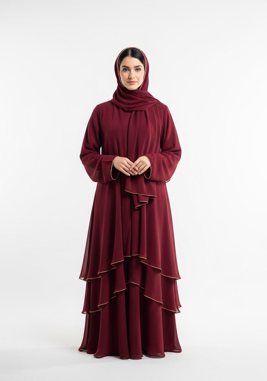 Introducing the Maroon Chiffon Abaya, a masterpiece of modest fashion designed for the modern woman. This exceptional piece features a rich, deep maroon tone that effortlessly complements any look.