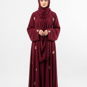 Introducing the Maroon Georgette Abaya, a masterpiece of modest fashion designed for the modern woman. This exceptional piece features a rich, deep maroon tone that effortlessly complements any look.