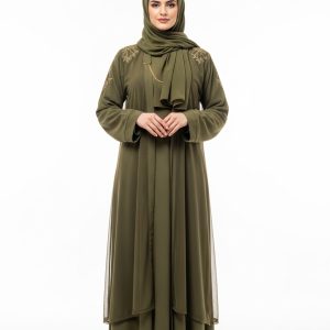 Introducing the Olive Green Mesh Abaya, a masterpiece of modest fashion designed for the modern woman. This exceptional piece features a rich, deep olive green tone that effortlessly complements any look.