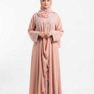 Introducing the Peach Georgette Abaya, a masterpiece of modest fashion designed for the modern woman. This exceptional piece features a rich, deep peach tone that effortlessly complements any look.