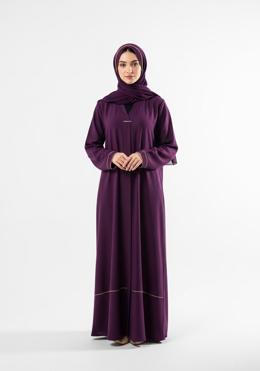 Introducing the Purple Cotton Abaya, a masterpiece of modest fashion designed for the modern woman. This exceptional piece features a rich, deep purple tone that effortlessly complements any look.