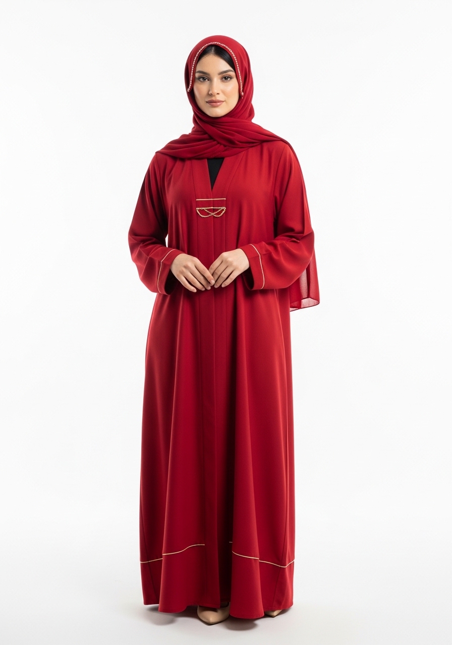 Introducing the Red Cotton Abaya, a masterpiece of modest fashion designed for the modern woman. This exceptional piece features a rich, deep red tone that effortlessly complements any look.