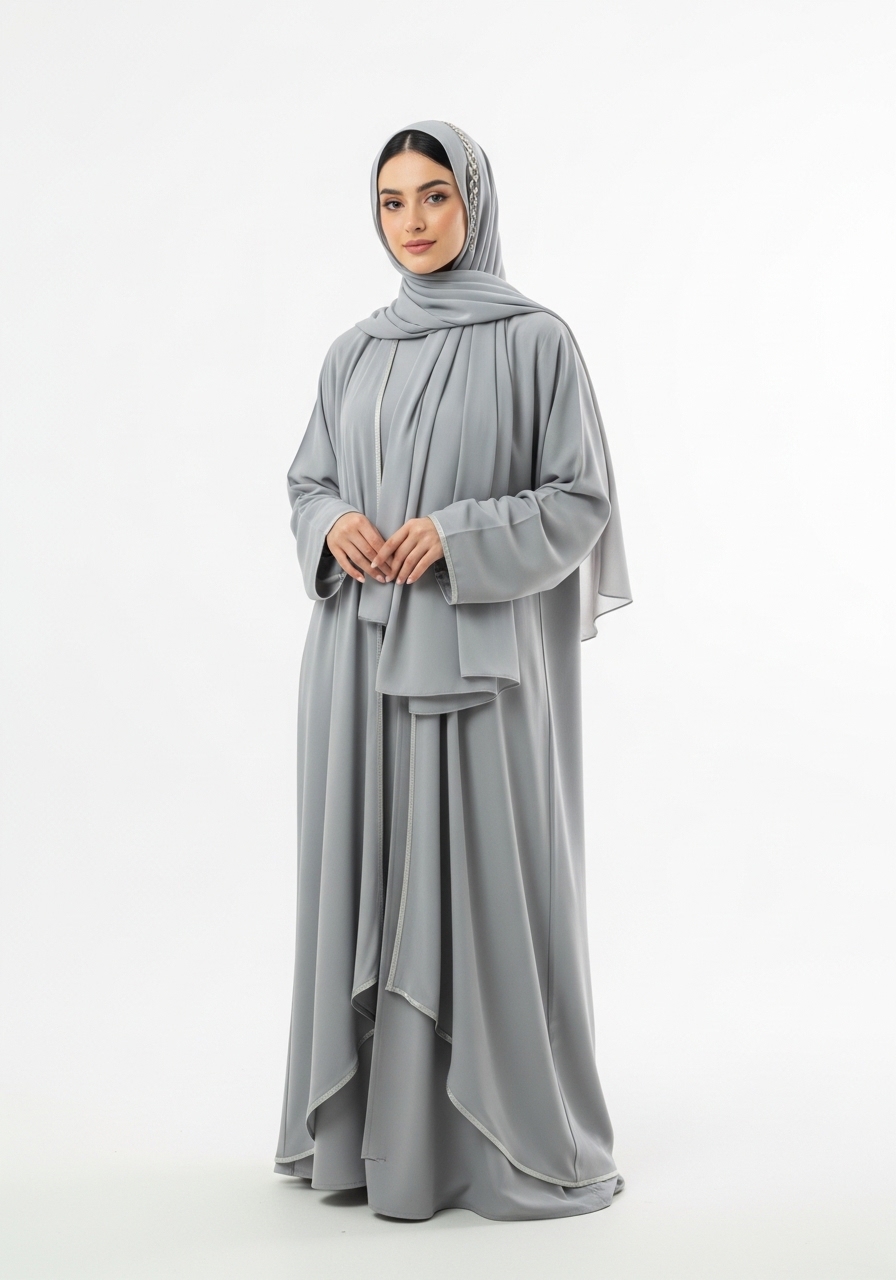 Introducing the Silver Rayon Abaya, a masterpiece of modest fashion designed for the modern woman. This exceptional piece features a rich, deep silver tone that effortlessly complements any look.