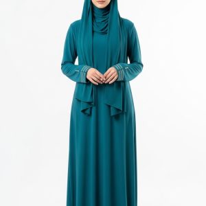 Introducing the Teal Jersey Abaya, a masterpiece of modest fashion designed for the modern woman. This exceptional piece features a rich, deep teal tone that effortlessly complements any look.