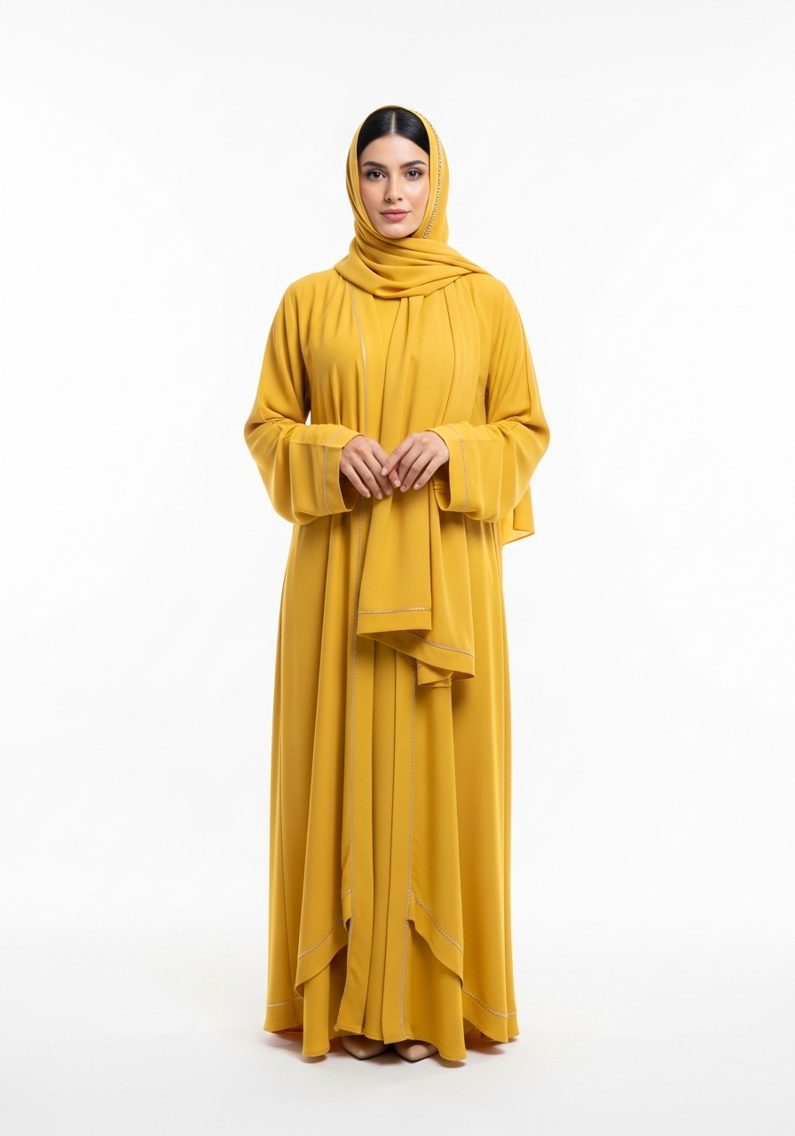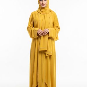 Introducing the Yellow Rayon Abaya, a masterpiece of modest fashion designed for the modern woman. This exceptional piece features a rich, deep yellow tone that effortlessly complements any look.